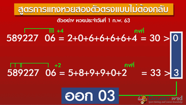 ตัวอย่างวิธีคำนวณหวยแบบ 2 ตัวตรงไม่ต้องกลับ