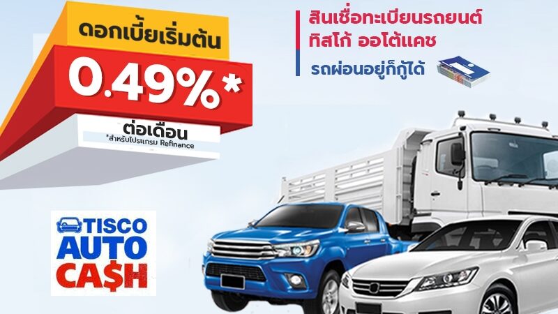 สินเชื่อสำหรับผู้ที่เป็นเจ้าของรถยนต์ปลอดภาระ และต้องการเงินลงทุนระยะสั้น อัตราดอกเบี้ยต่ำ ขั้นตอนง่าย สะดวก รวดเร็ว ไม่ต้องโอนทะเบียน ไม่ต้องจอดรถ รับเงินรวดเร็วภายใน 3 วันทำการ สินเชื่อรถเเลกเงิน TISCO สินเชื่อรถ ได้เงินไว ไม่โอนเล่ม ดอกเบี้ยเริ่มต้น 0.49% ต่อเดือน อนุมัติไว ปิดไม่ปรับ รับรถทุกประเภท 2-12* ล้อ เป็นการกู้ยืมเงินโดยใช้สมุดคู่มือทะเบียนรถเป็นหลักประกันเเทนการส่งมอบรถ ผู้กู้ต้องส่งมอบเล่มทะเบียนให้กับธนาคารโดยไม่ต้องมีการโอนเล่มทะเบียน ปิดบัญชีก่อนกำหนดหรือชำระค่างวดมากกว่ากำหนดเพื่อตัดเงินต้นได้ เงื่อนไขของหลักประกันเงินกู้ รถยนต์นั่งส่วนบุคคล/รถกระบะ/รถตู้ อายุรถรวมผ่อนไม่เกิน 25 ปี มอเตอร์ไซค์บิ๊กไบค์ (BMW,Ducati,Harley-Davision,Honda,Kawasaki,Triumph,Yamaha) อายุรถรวมผ่อนไม่เกิน 15 ปี รถกระบะดัดเเปลงสภาพเช่น Food Truck อายุรถรวมผ่อนไม่เกิน…