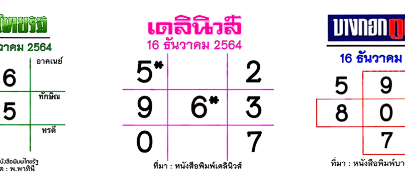 หวยหนังสือพิมพ์ไทยรัฐ – เดลินิวส์ – บางกอกทูเดย์ งวดล่าสุด งวดนี้